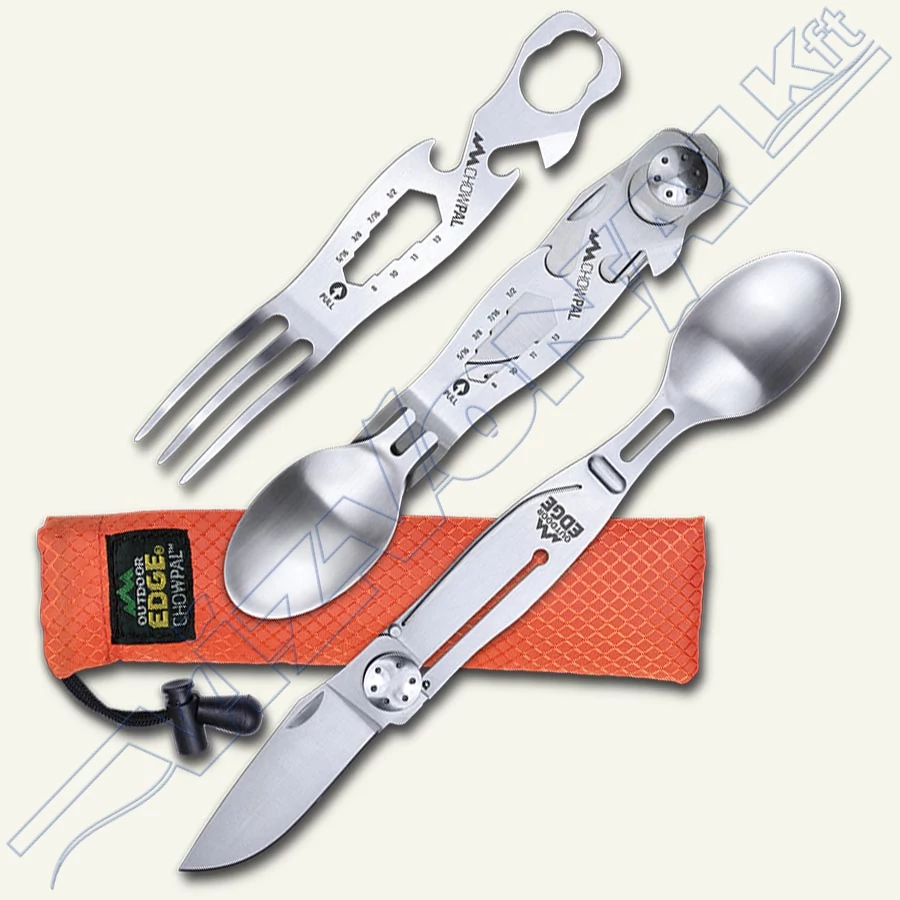 V681002 Tonképpen ez is egy kanálgép, csak kissé át- és túlgondolták ott az Óperenciás tengerentúl. Így kaptunk egy multikanálgépet, mely nyomokban szerszámokat is tartalmaz. Persze baromi jól ki van találva, és elsősorban evőeszköz, de a hajón pár kisebb beavatkozást is el lehet végezni a multi-szerszám-evőseszköz segítségével. Sört lehet nyitni! Ez után a többi kit érdekel? Na jó, konzervet is, meg pár anyát (8-10-11-13 mm), meg csavart (egy, sima egyenes csavarhúzóval) és persze kanál / kés egyben (mert ezeket ritkán használjuk együtt, így vagy ez vagy az), és villa. Pont elég. Kisebb túravitorlásokon, vízitúrán vagy bármilyen hosszabb szabadban töltött tevékenység esetén kitűnő útitárs lesz ez a könnyű kis cucc, melyhez kapunk egy jól látható apró tároló zsákot is! |